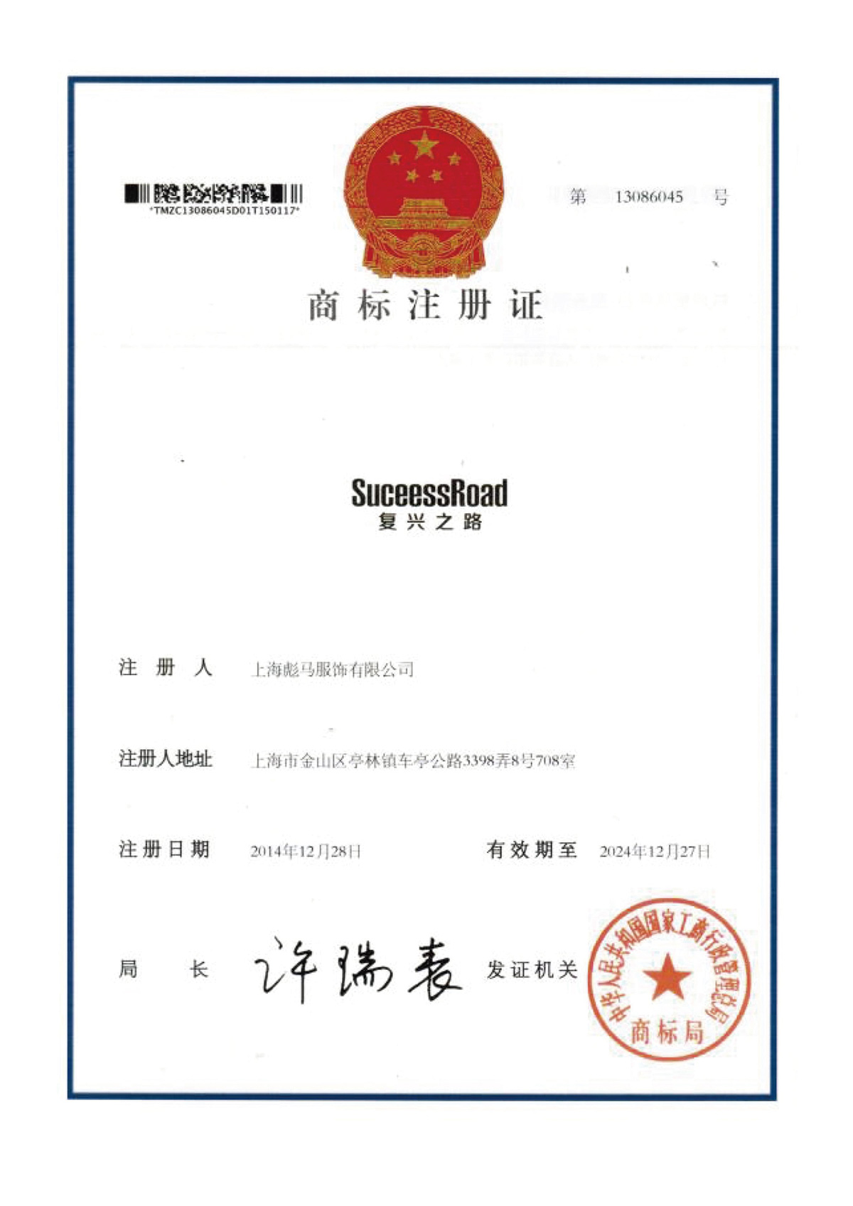 商标证书